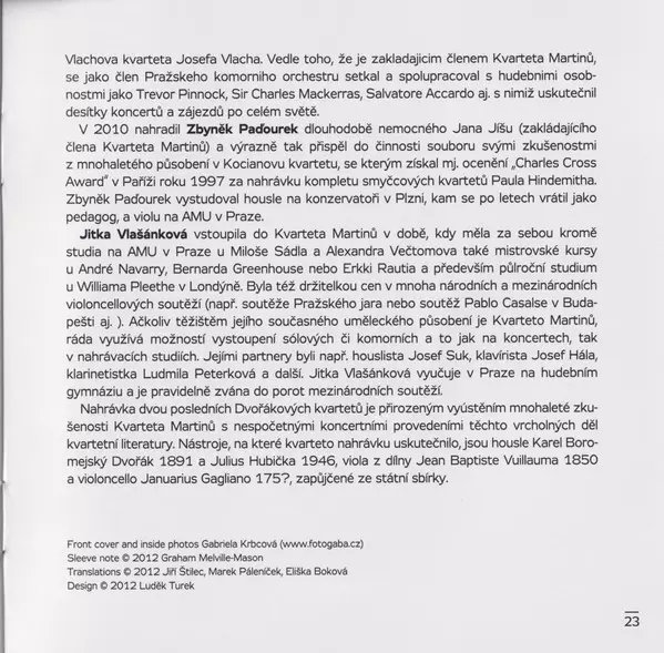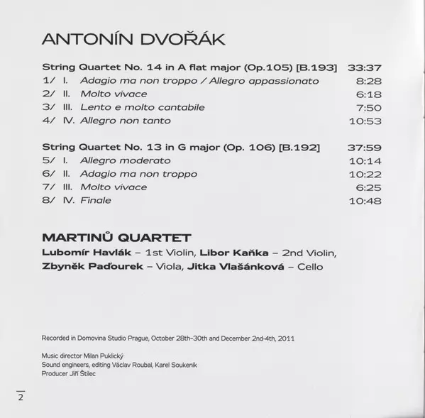 | Interpret | Antonín Dvořák | Martinů Quartet |