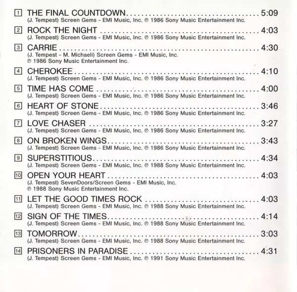 Europe: Definitive Collection verze na CD v standardní edici. Toto konkrétní vydání vyšlo v Evropě ve vydavatelství Epic roku 1997. Album zasahuje do žánrů Rock, Pop Rock, Hard Rock a Heavy Metal.