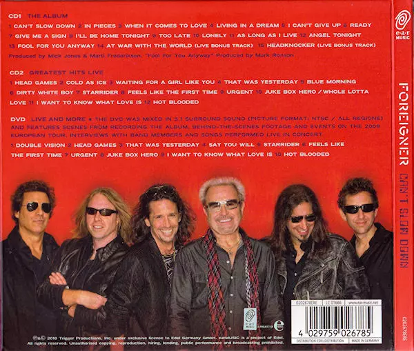 Foreigner Album Can't Slow Down z roku 2009 je směsicí nových a starých písní. Album bylo nahráno v původní sestavě Foreigner , což mu dodalo klasický nádech. Nové písně na albu jsou směsicí rocku a balad, zatímco starší písně jsou klasickými písněmi Foreigner . Album bylo úspěšné a dosáhlo třetího místa v hitparádě Billboard.