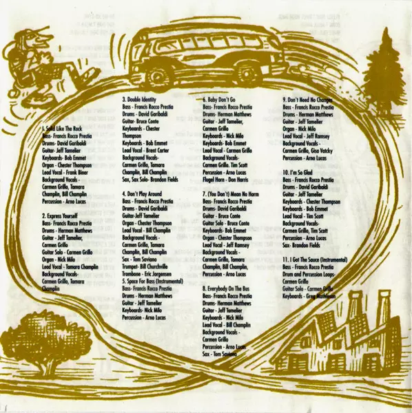 Backing Vocals Carmen Grillo | Backing Vocals, Lead Vocals, Songwriter Tim Scott (30) | Drums David Garibaldi | Guitar Carmen Grillo, Jeff Tamelier | Keyboards Bob Emmet, Chester Thompson (2) | Percussion Arno Lucas | Saxophone Brandon Fields | Songwriter Francis Rocco Prestia, Sal Polcino