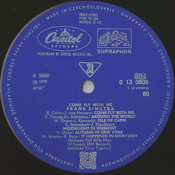 | Vydavatelství | Supraphon | Gramofonový Klub | Capitol Records |