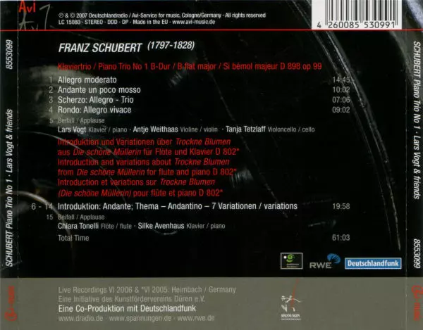 | Interpret | Franz Schubert | Lars Vogt | Tanja Tetzlaff | Antje Weithaas | Silke Avenhaus | Chiara Tonelli |