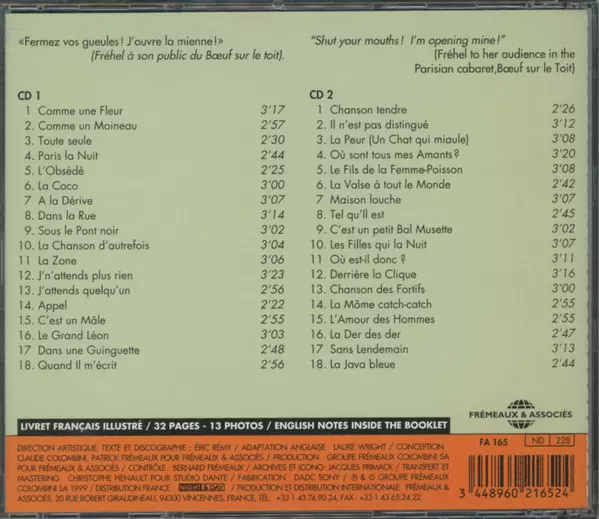 Fréhel: 1930-1939 verze na 2CD v standardní edici. Toto konkrétní vydání vyšlo v Francii ve vydavatelství Frémeaux & Associés dne 1. dubna 2015. Album zasahuje do žánrů Pop a Chanson.