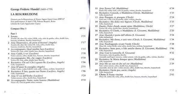 Georg Friedrich Händel: La Resurrezione verze na 2CD v standardní edici. Toto konkrétní vydání vyšlo v Nizozemsku ve vydavatelství Brilliant Classics dne 6. října 2009. Album zasahuje do žánrů Klasická hudba, Barokní hudba a Oratorio.