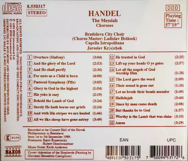| Interpret | Georg Friedrich Händel | Jaroslav Krček | Capella Istropolitana | Bratislava City Choir |