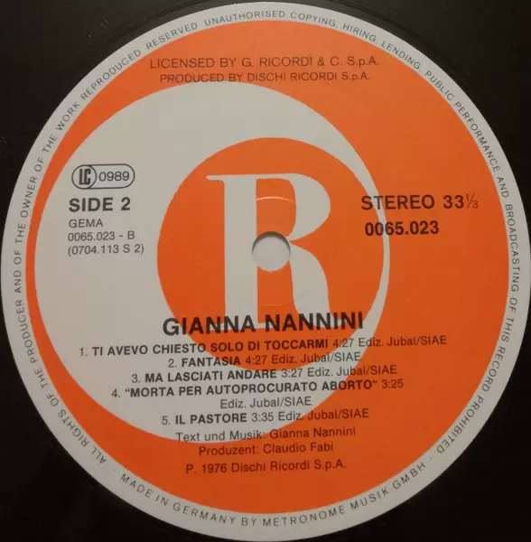 | Upřesnění | 5th Anniversary Ricordi Germany Reissue |