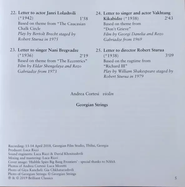 | Interpret | Giya Kancheli | Andrea Cortesi | Georgian Strings |