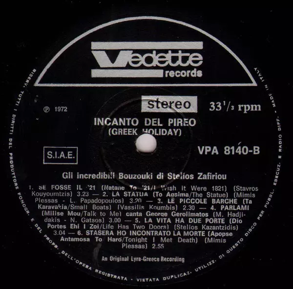 | Titul | Incanto Del Pireo (Greek Holiday) - Gli Incredibili Bouzouki Di Stelios Zafiriou |