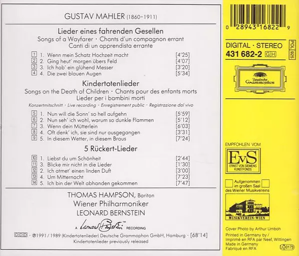 | Interpret | Wiener Philharmoniker | Leonard Bernstein | Gustav Mahler | Thomas Hampson |