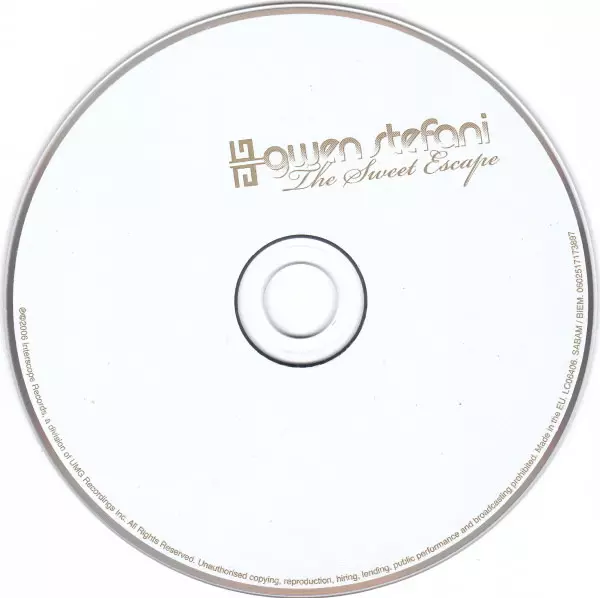 Gwen Stefani: The Sweet Escape verze na CD v standardní edici. Toto konkrétní vydání vyšlo v Evropě ve vydavatelství Interscope Records dne 5. prosince 2006. Album zasahuje do žánrů Rock, Pop, Elektronická hudba, Funk / Soul, Hip Hop, Pop Rock, Pop Rap a Contemporary R&B. Super Jewel Box.