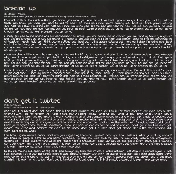 Engineer [Assistant] Alex Dromgoole, David Emery, Jason Finkel | Mixed By, Producer [Additional Production] Mark Stent | Producer The Neptunes | Programmed By [Additional Mix Programming], Keyboards [Additional] Pete Davis | Recorded By Andrew Coleman (3) | Recorded By [Additional Vocals Recorded By] Greg Collins | Written-By Gwen Stefani, Pharrell Williams