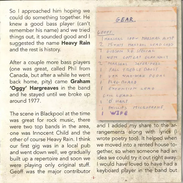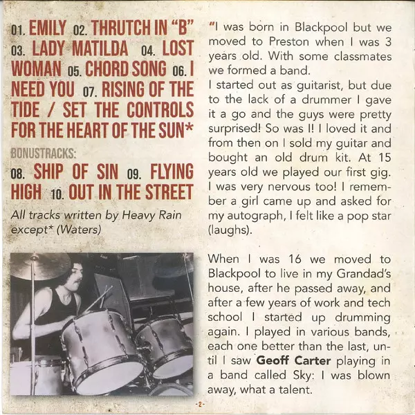 Skupina Heavy Rain , která vznikla v Blackpoolu na konci 60. let, byla "heavy progressive blues" a na pódiu se střídala s velkými jmény jako Hawkwind, Pink Fairies nebo Caravan. V roce 1973, nyní již zredukovaní na power-trio , odjeli do Londýna a zaregistrovali album, které sice t...