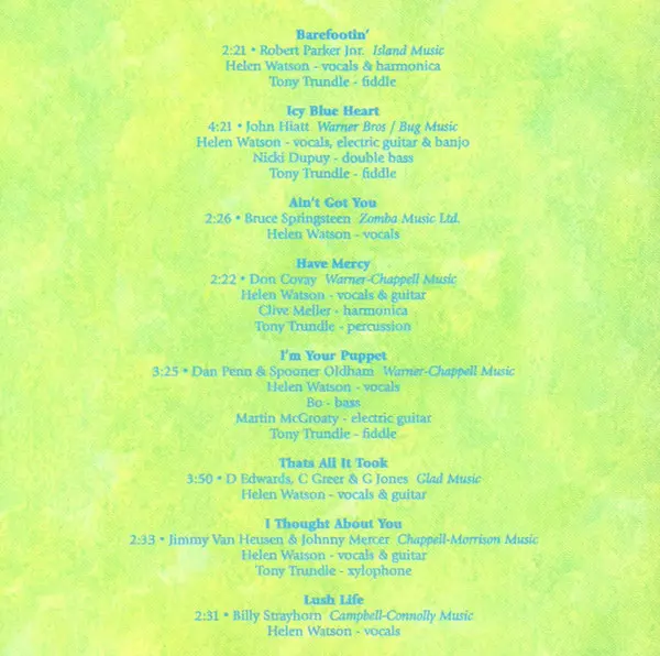 Harmonica Clive Mellor | Percussion Tony Trundle | Vocals, Guitar Helen Watson | Written-By Don Covay