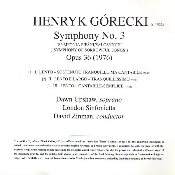 | Symphony No. 3 Opus 36 (Symphony Of Sorrowful Songs, 1976) | ||