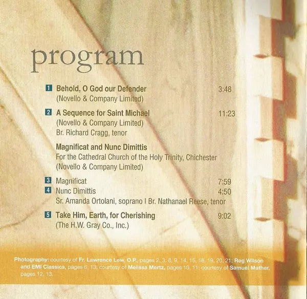 | Titul | A Sequence For Saint Michael / Requiem / Take Him, Earth, For Cherishing / Te Deum Laudamus |