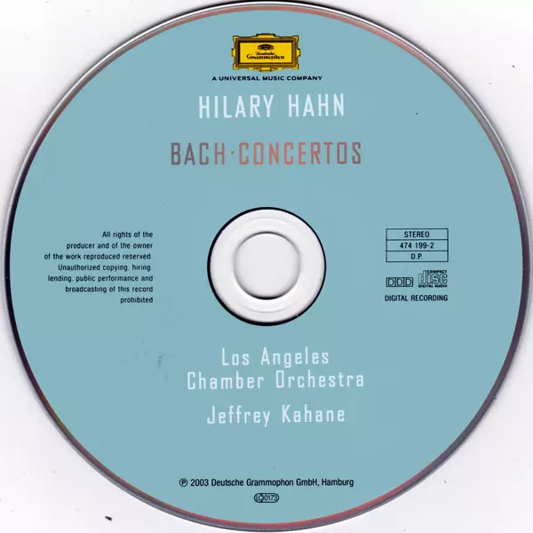 | Interpret | Johann Sebastian Bach | Hilary Hahn | The Los Angeles Chamber Orchestra | Jeffrey Kahane |