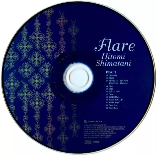 Hitomi Shimatani: Flare verze na CD/DVD v standardní edici. Toto konkrétní vydání vyšlo v Japonsku ve vydavatelství Avex Trax dne 22. července 2008. Album zasahuje do žánrů Pop, Elektronická hudba, Synth-pop a J-pop.