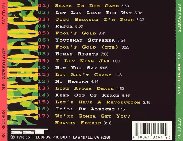 H.R.: Anthology verze na CD v standardní edici. Toto konkrétní vydání vyšlo v USA ve vydavatelství SST Records dne 28. července 1998. Album zasahuje do žánrů Rock, Reggae, Punk, Roots Reggae a Dub.