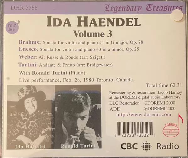 | Interpret | Ida Haendel | Johannes Brahms | George Enescu |