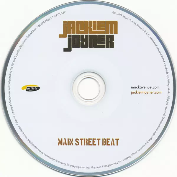 Jackiem Joyner: Main Street Beat verze na CD v standardní edici. Toto konkrétní vydání vyšlo v Worldwide ve vydavatelství Artistry Music dne 7. července 2017. Album zasahuje do žánrů Jazz a Smooth Jazz.