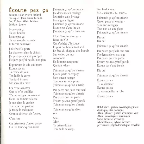 | Titul | Écoute Pas Ça |