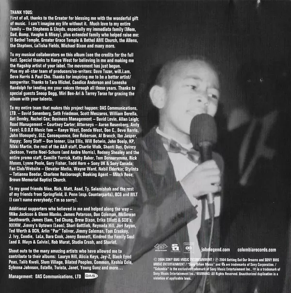 Guitar George Pajon Jr. | Horns The Horn Dogs | Saxophone, Flute Tim "Izo" Orindgreff | Strings Miri Ben-Ari | Trumpet Printz Board | Vocals, Piano John Legend | Written-By John Stephens (3), Kanye West