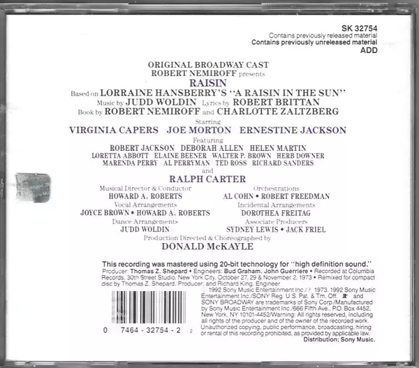 | Titul | Raisin (Original Broadway Cast) |