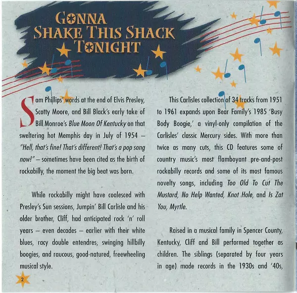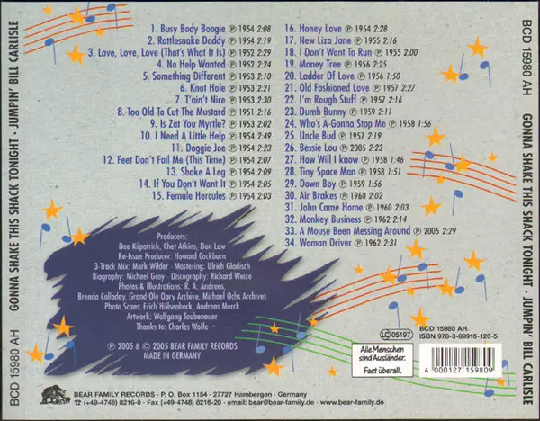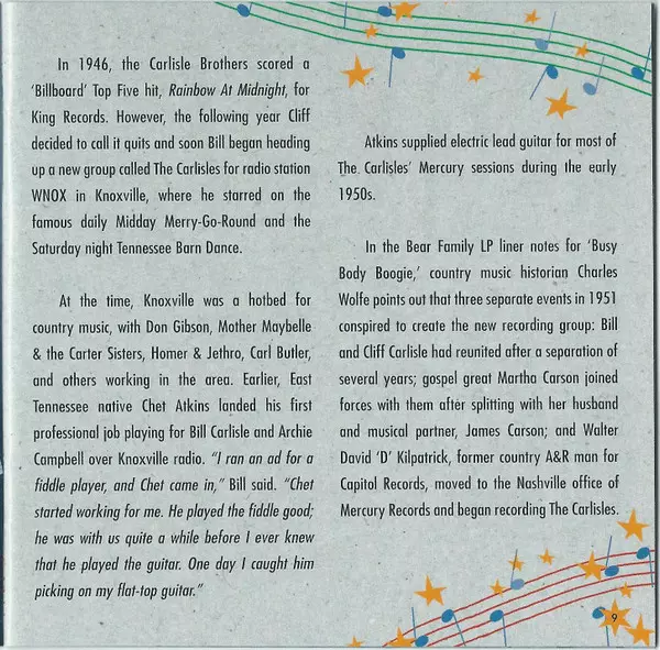 Bill Carlisle: Busy Body Boogie verze na CD v standardní edici. Toto konkrétní vydání vyšlo v Německu ve vydavatelství Bear Family Records dne 12. července 2005. Album zasahuje do žánrů Folk, World, & Country a Country.