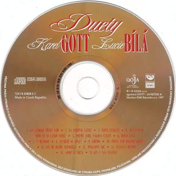 Karel Gott: Duety CLR verze na CD v kolorované edici. Toto konkrétní vydání vyšlo v Česku ve vydavatelství Goja ve spolupráci s Monitor-EMI.