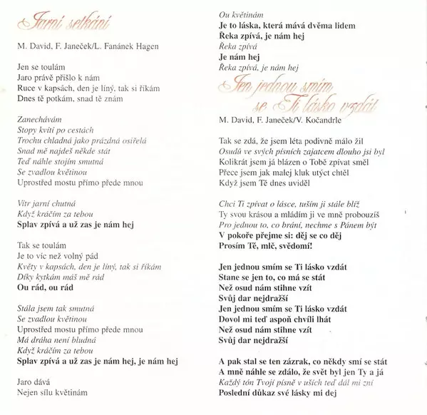 Arranged By Jiří Škorpík | Lyrics By Vladimír Kočandrle | Music By František Janeček, Michal David