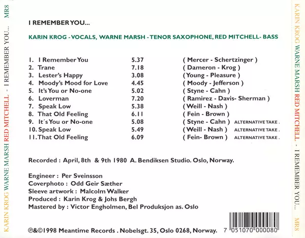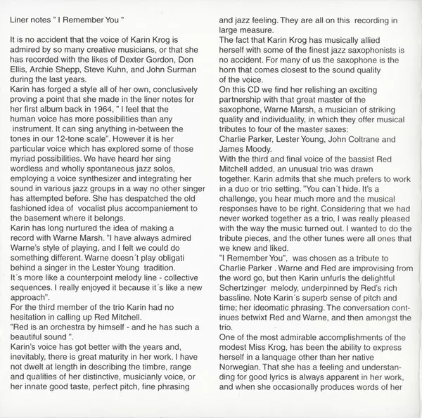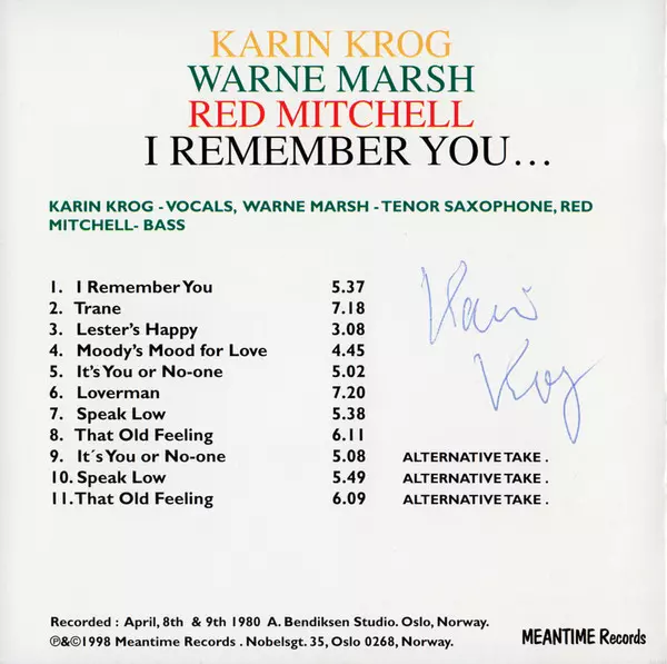 | Interpret | Karin Krog | Warne Marsh | Red Mitchell |