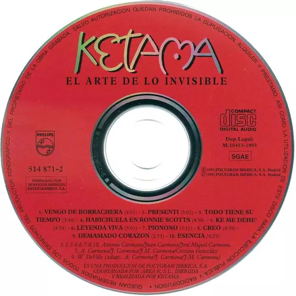 Ketama: El Arte De Lo Invisible verze na CD v standardní edici. Toto konkrétní vydání vyšlo v Španělsku ve vydavatelství Philips dne 19. října 1993. Album zasahuje do žánrů Latinská hudba a Flamenco.