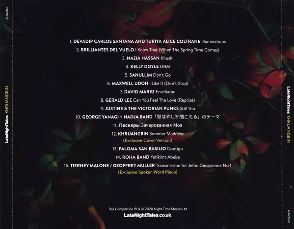 Velkolepá nová edice "Late Night Tales" texaských psychrockerů Khruangbin! Když si Bonobo v roce 2013 vybral pro svůj "Late Night Tales" skladbu neznámé kapely Khruangbin, nikdo nemohl tušit, že se trio z Houstonu stane o chvíli později díky svému exotickému zvuku mezinárodní hvězdou. Bezprostředně po jejich třetím studiovém albu "Mordechai" (če...