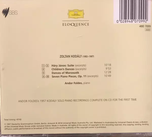 | Interpret | Zoltán Kodály | Andor Foldes |