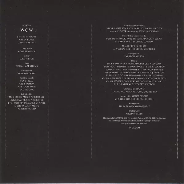 Arranged By [Strings] Cliff Masterson, Steve Anderson | Backing Vocals Abbie Osmon, Adetoun Anibi, Roxanne Wilde, Zalika King | Bass Dishan Abrahams | Conductor Cliff Masterson | Drums Tom Meadows | Guitar Luke Fitton | Lead Vocals Kylie Minogue | Percussion Colin Elliot | Piano, Keyboards Steve Anderson | Strings Royal Philharmonic Orchestra | Written-By Kylie Minogue, Steve Anderson