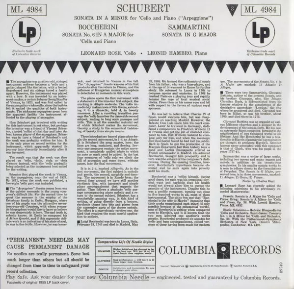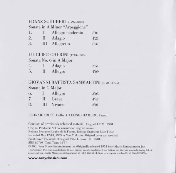 | Interpret | Franz Schubert | Luigi Boccherini | Giovanni Sammartini | Leonard Rose | Leonid Hambro |