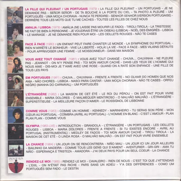 Linda De Suza: L'intégrale 1979-1985 verze na 10CD/Box Set v standardní edici. Toto konkrétní vydání vyšlo v Francii ve vydavatelství Warner Music France dne 18. prosince 2015. Album zasahuje do žánrů Pop, Folk, World, & Country a Vokál.