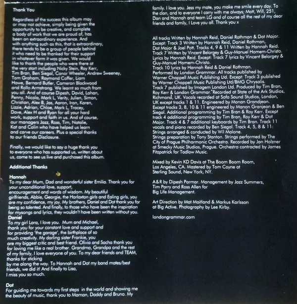 Arranged By [Strings Arranged By], Conductor [Strings Conducted By] Wil Malone | Contractor [Strings Contracted For Tadlow Music By] James Fitzpatrick | Copyist [Strings Preparation] Tony Stanton | Engineer Manon Grandjean | Keyboards [Additional Keyboards] Tim Bran | Lyrics By Hannah Reid | Programmed By [Additional Programming By] Dot Major, Roy Kerr, Tim Bran | Recorded By [Strings Recorded By] Jan Holzner | Strings [Strings Performed By] The City Of Prague Philharmonic | Written-By Hannah Reid