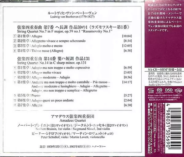 | 弦楽四重奏曲 第7番 ヘ長調 作品59の1 ≪ラズモフスキー第1番≫ = String Quartet No.7 In F Major, Op.59 No.1 "Rasumovsky No.1" | ||