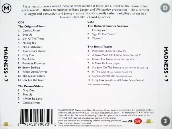 Madness: 7 verze na 2CD v remasterované edici. Toto konkrétní vydání vyšlo v Velké Británii ve vydavatelství Salvo ve spolupráci s Union Square Music dne 14. dubna 2023.