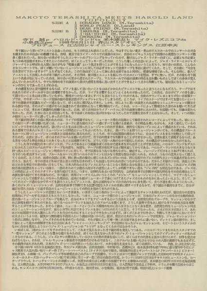 | Interpret | Harold Land | Makoto Terashita |