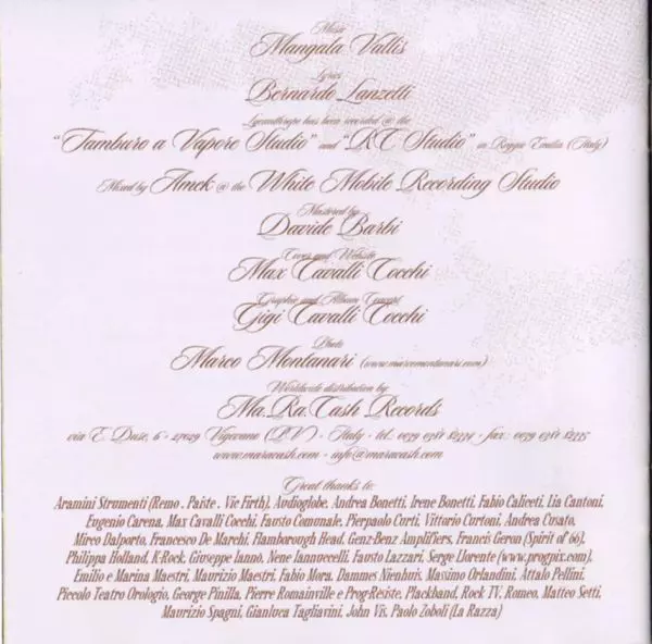 | Vydavatelství | Ma.Ra.Cash Records | Tamburo A Vapore |
