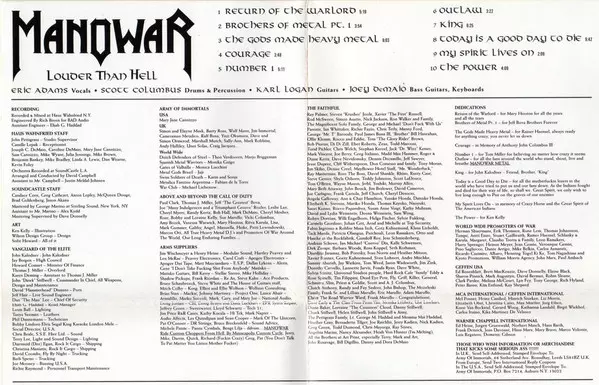 Manowar Louder Than Hell z roku 1996 je klasické heavy metalové album. Obsahuje některé z nejlepších skladeb skupiny, včetně "The Gods Made Heavy Metal", "Louder Than Hell" a "King of Kings". Toto album musí mít každý fanoušek heavy metalové hudby.