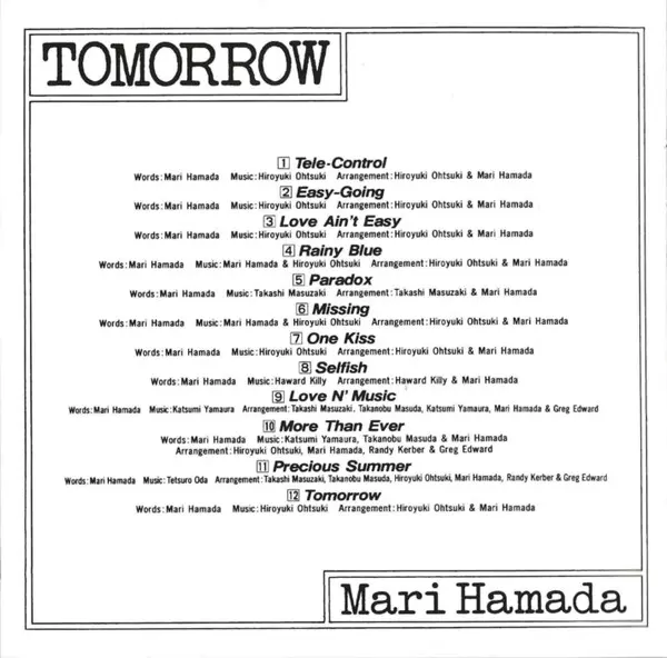 Mari Hamada: Tomorrow verze na CD v remasterované edici. Toto konkrétní vydání vyšlo v Japonsku ve vydavatelství Universal Music dne 15. ledna 2014. Album zasahuje do žánrů Rock, Pop, Pop Rock, J-Rock a AOR. Shm CD.