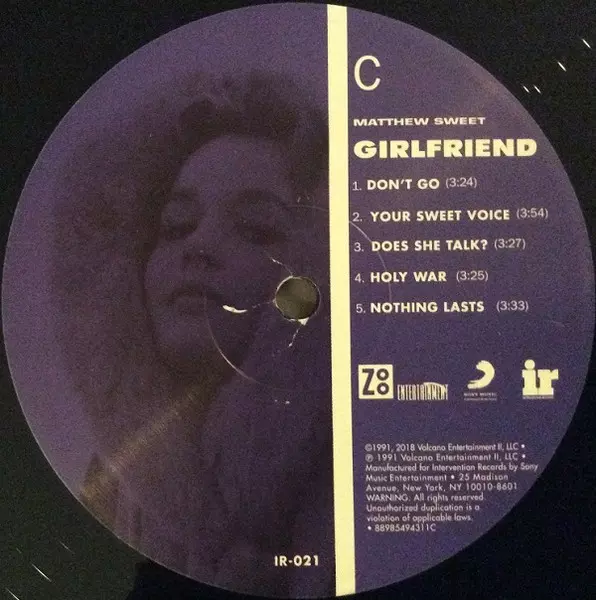 Matthew Sweet: Girlfriend verze na vinylu 2LP v remasterované edici. Toto konkrétní vydání vyšlo v USA ve vydavatelství Intervention Records ve spolupráci s Zoo Entertainment a Sony Music Commercial Music Group dne 18. ledna 2019. Album zasahuje do žánrů Rock, Indie Rock a Pop Rock. 180g Gatefold Vinyl.