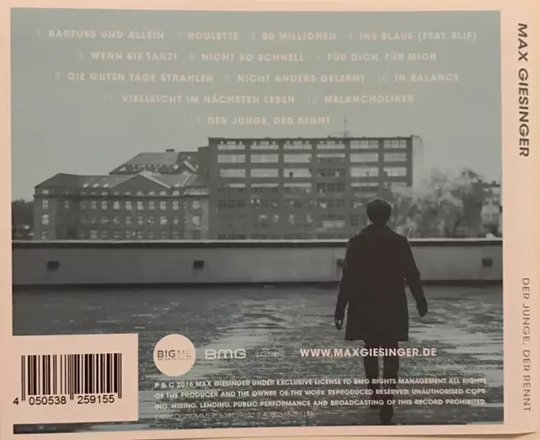 Max Giesinger: Der Junge, Der Rennt verze na CD v standardní edici. Toto konkrétní vydání vyšlo v Německu, Rakousku a Švýcarsku ve vydavatelství BMG dne 1. července 2018. Album zasahuje do žánrů Pop a Vokál.