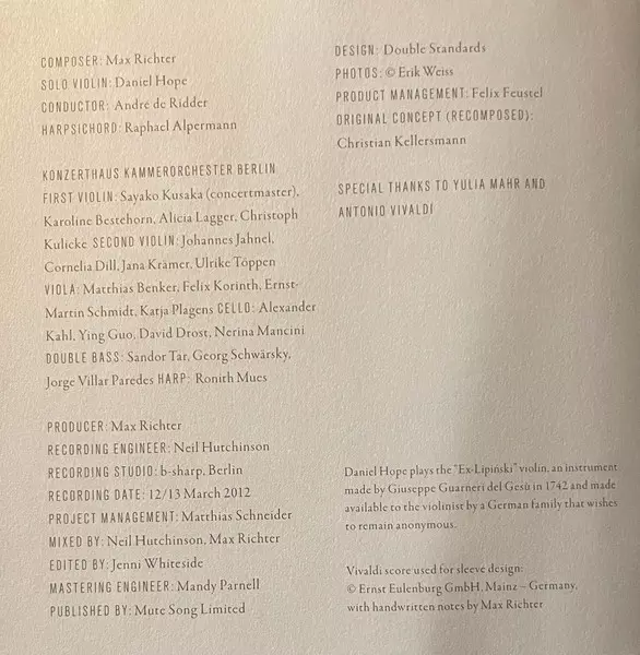 | Interpret | Antonio Vivaldi | Max Richter |