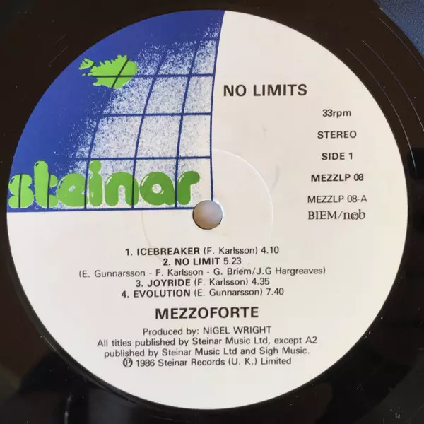 Mezzoforte: No Limits verze na vinylu LP v standardní edici. Toto konkrétní vydání vyšlo v Skandinávie ve vydavatelství Steinar ve spolupráci s Funkin' Marvellous Records roku 1986. Album zasahuje do žánrů Elektronická hudba, Jazz, Jazz-Funk a Jazzdance.