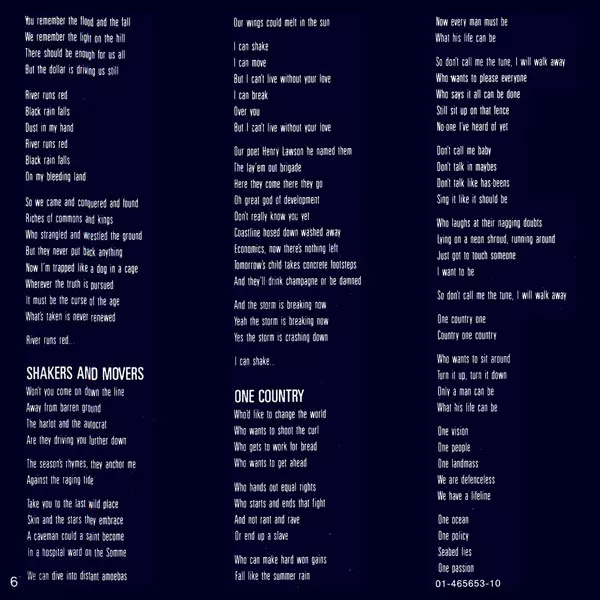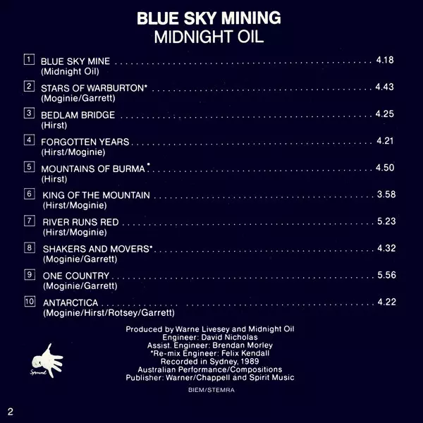 Na sedmém albu "Blue Sky Mining" se kapela ve skladbách jako "One Country", "Blue Sky Mine" a "Forgotten Years" zaměřila na mezinárodní tvorbu, aniž by ztratila svůj charakteristický australský hlas. Na turné po USA po vydání alba skupina upozorňovala na ekologickou katastrofu způsobenou tankerem společnosti Exxon, který najel na mělčinu na Alja...