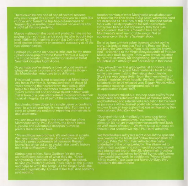 Morcheeba je britská skupina, která vznikla v polovině 90. let a je známá svou hudbou v tempu, která obsahuje prvky trip-hopu, rocku, folk-rocku a R&B. Skupinu původně tvořili zpěvačka Skye Edwards a bratři Paul a Ross Godfreyovi. Poprvé se proslavili debutovým albem "Who Can You ...